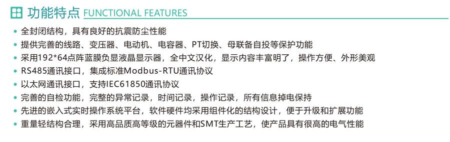 適用于35kV及以下電壓等級變電站、電廠、工礦企業(yè)、建筑等領(lǐng)域,具有保護、遙測、遙信、遙控等功能,可實現(xiàn)對其全方位的控制和管理。