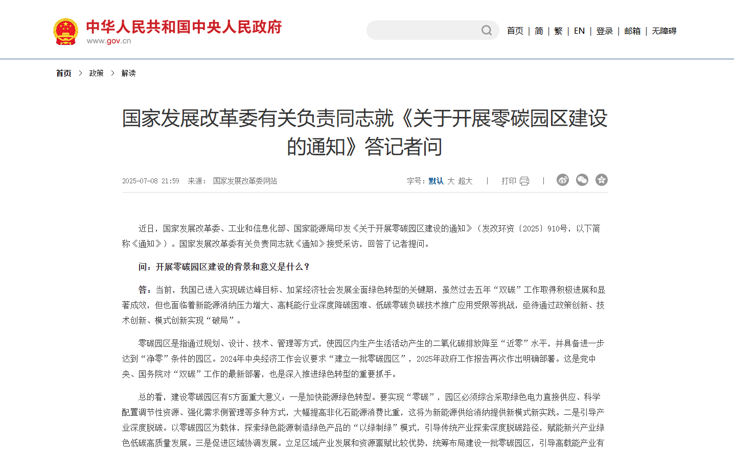 國(guó)家發(fā)展改革委于2025年7月8日發(fā)布關(guān)于零碳園區(qū)建設(shè)的通知,正式拉開(kāi)了全國(guó)范圍內(nèi)零碳園區(qū)規(guī)?;ㄔO(shè)的序幕。隨著“十五五”規(guī)劃的推進(jìn),2025年底至2026年初,從國(guó)家到地方,一系列政策文件接連出臺(tái)。